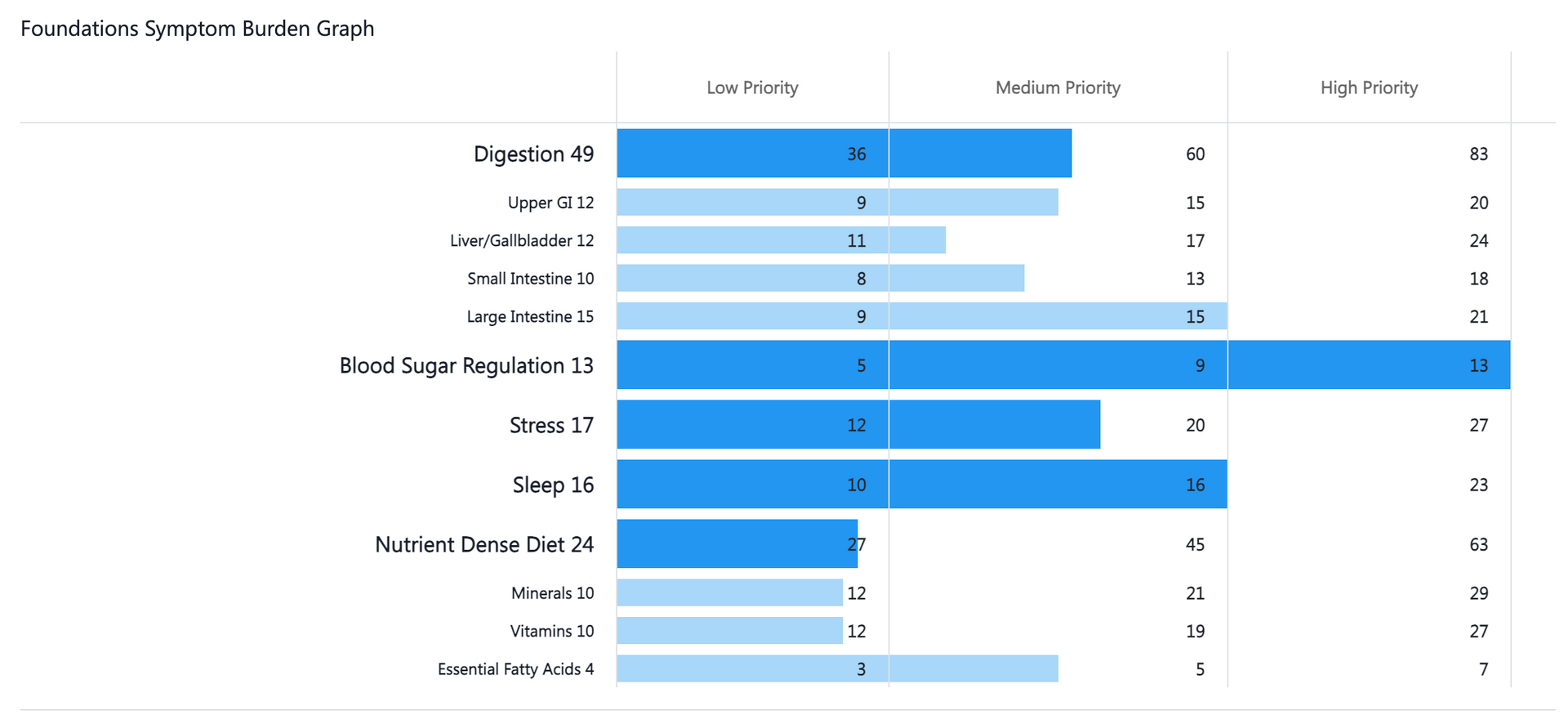 Holistic Nutritional Therapy involves a nutritional assessment, which is a formal process for identifying areas that require the most focus (see charts below). This includes tailored food and lifestyle recommendations, supplement suggestions (when necessary), and continuous follow-up sessions to ensure you remain on track for optimal health.